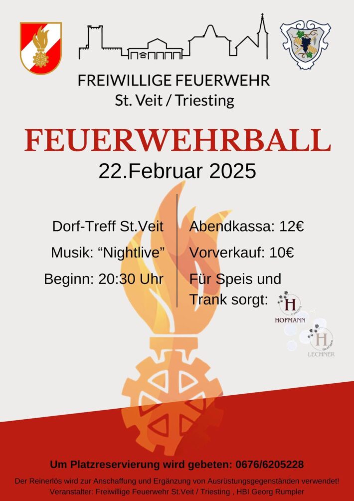 Die FF St.Veit feiert auch 2025 ! In gewohnter Weise laden wir daher Euch auch heuer zum Feuerwehrball ein!