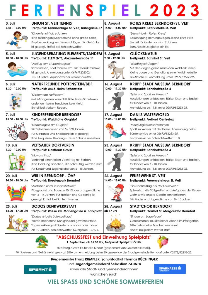 Im Zuge der Ferienspiele 2023 bieten wir interessierten Kindern und Jugendlichen wieder die Möglichkeit die Tätigkeiten bei der Feuerwehr St.Veit näher zu betrachten! Auch unsere Feuerwehrjugend ist vor Ort und zeigt den Kindern was man mit Kameradschaft alles leisten kann😊🙌🏻. Wir freuen uns auf viele Besucherinnen und Besucher 🚒🚒 Der Spaß wird sicherlich nicht zu kurz kommen ! 😎🙌🏻
