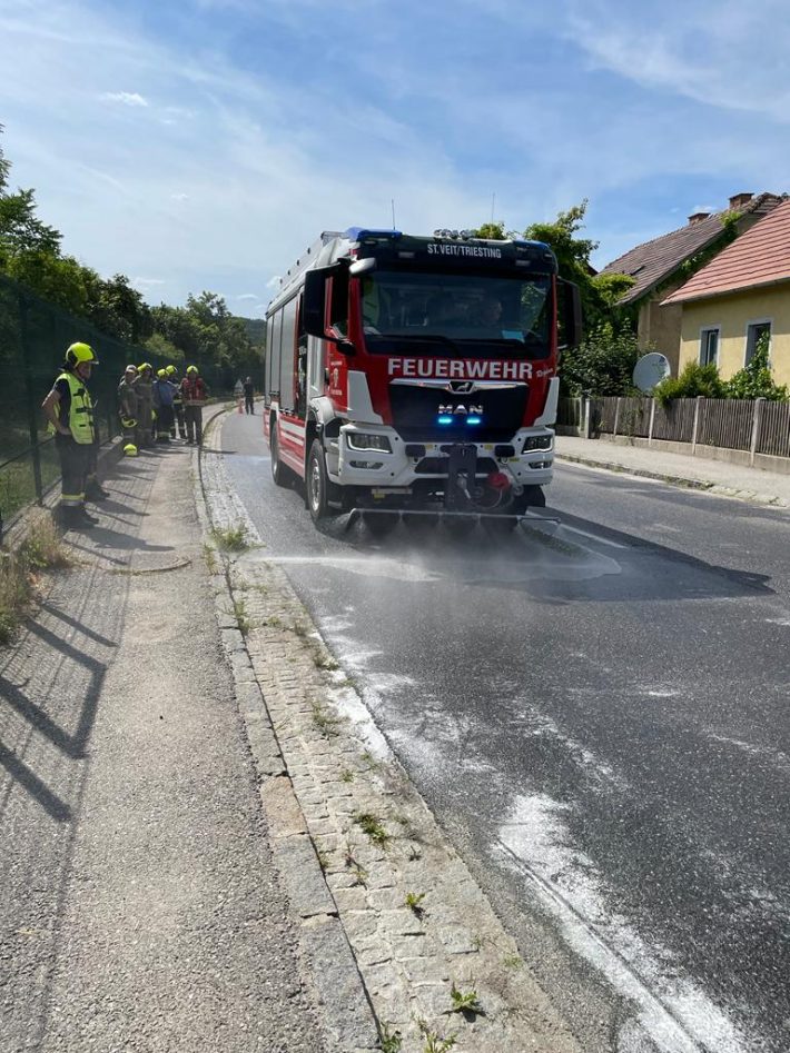 Um 14:00 Uhr wurde wir zu einem Verkehrsunfall auf der Bundesstraße 18 alarmiert. 2 Fahrzeuge kollidierten, blieben fahruntüchtig stehen und verloren Betriebsmittel. Nach Absicherung der Einsatzstelle und Umleitung des Verkehrs durch das Ortsgebiet, wurden die Fahrzeuge von der Freiwillige Feuerwehr Berndorf-Stadt mittels Kran geborgen. Im Anschluss wurden die Betriebsmittel gebunden, die Fahrbahn gereinigt und die Schadensstelle dem Straßenerhalter übergeben. Aufgrund der hohen Temperaturen versorgte uns die angrenzend wohnende Familie Wölfl mit kühlen Getränken! DANKESCHÖN !!!