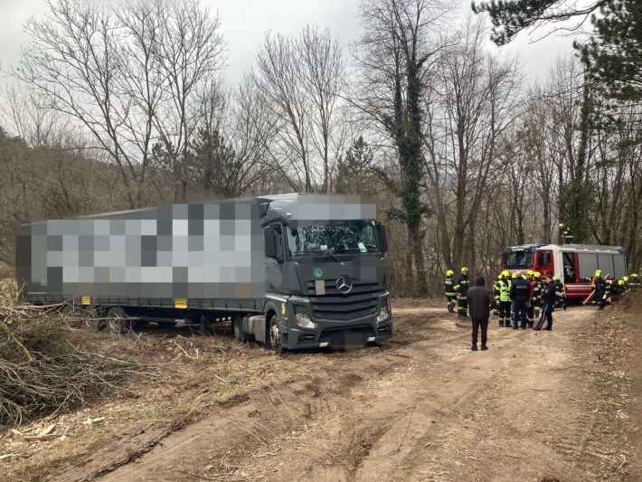Der Lenker eines ausländischen Sattelzuggespannes, der als Ziel einen örtlichen Industriebetrieb hatte, hat sich verfahren, kam in die an sich schon schmale Bahngasse, überquerte noch den Bahnübergang und fuhr weiter den unbefestigten Weg in das Waldgebiet der „Jauling“. Nachdem er seinen Fehler bemerkt hatte, wollte er auf einer leicht abschüssigen Fläche seinen Sattelzug wenden, was ihm jedoch nicht gelang. Das Gespann geriet außer Kontrolle, rutsche leicht ab und kam an einer Baumgruppe zum Stehen. Die Versuche des Lenkers, wegzukommen, schlugen fehl, die Antriebsräder der Zugmaschine fanden keinen Grip und drehten durch.