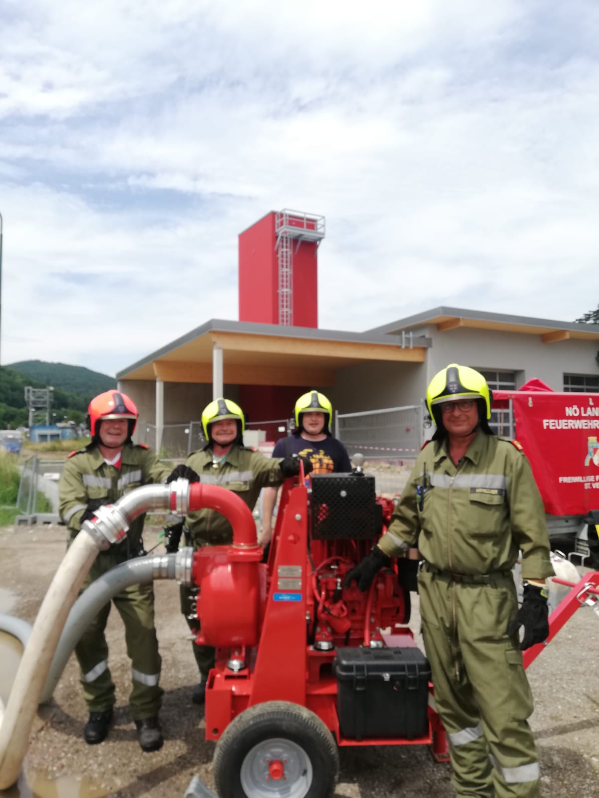 Um die Funktion dieser wichtigen „Fäkalien-Ader“ über das Wochenende aufrecht zu erhalten und eine Überlaufen des Kanals zu verhindern wurden wir von der Marktgemeinde Alland zur Unterstützung mit unserer Schmutzwasserpumpe SPA200 gebeten und von der Bezirksalarmzentrale Baden alarmiert. Nach kurzer Lageerkundung konnten wir einen „Bypass“ von einem Kanalschacht, um die beschädigte Stelle herum, zum nächsten Schacht herstellen. Die sehr bedienerfreundliche und wartungsextensive Schmutzwasserpumpe wurde der Marktgemeinde Alland im Rahmen einer Gerätebeistellung überlassen und wird bis voraussichtich Montag von Gemeindebediensteten, die auch reichlich „Feuerwehr-Erfahrung“ besitzen, bedient und überwacht!