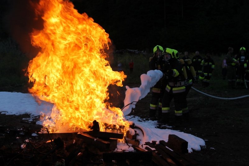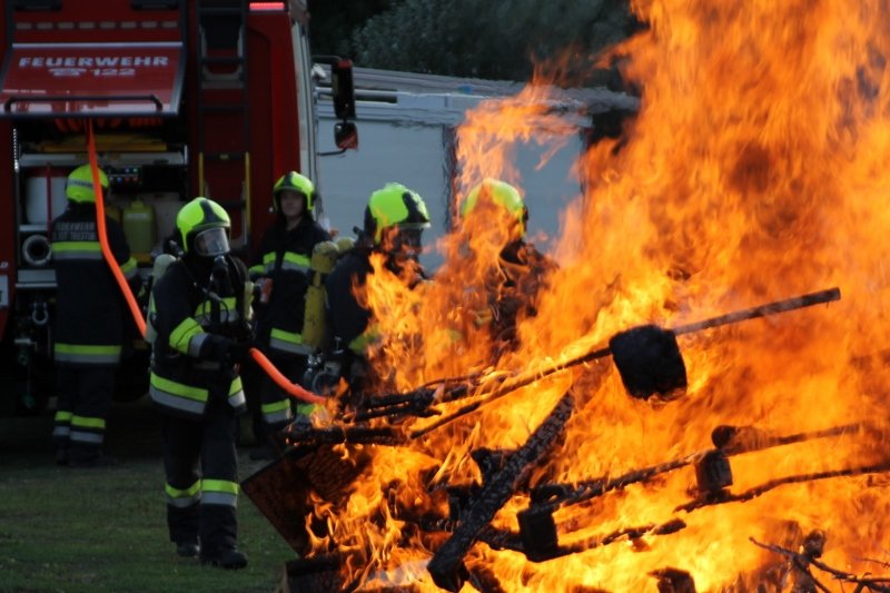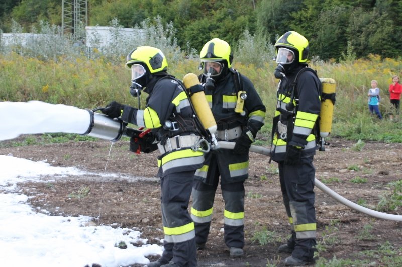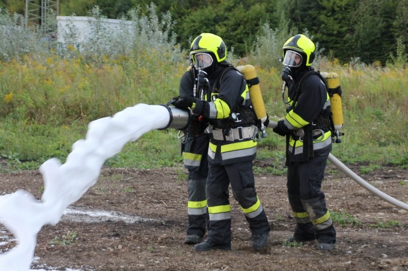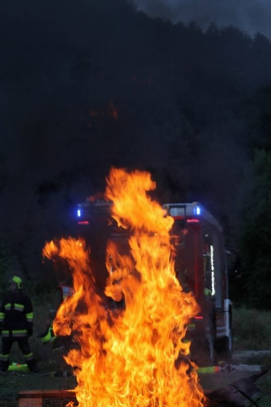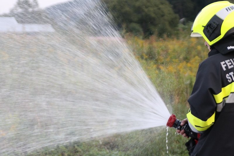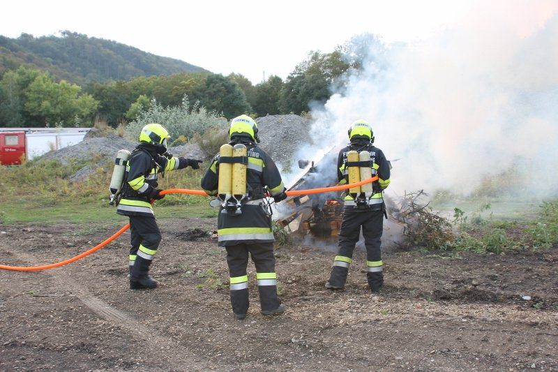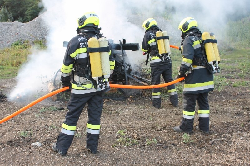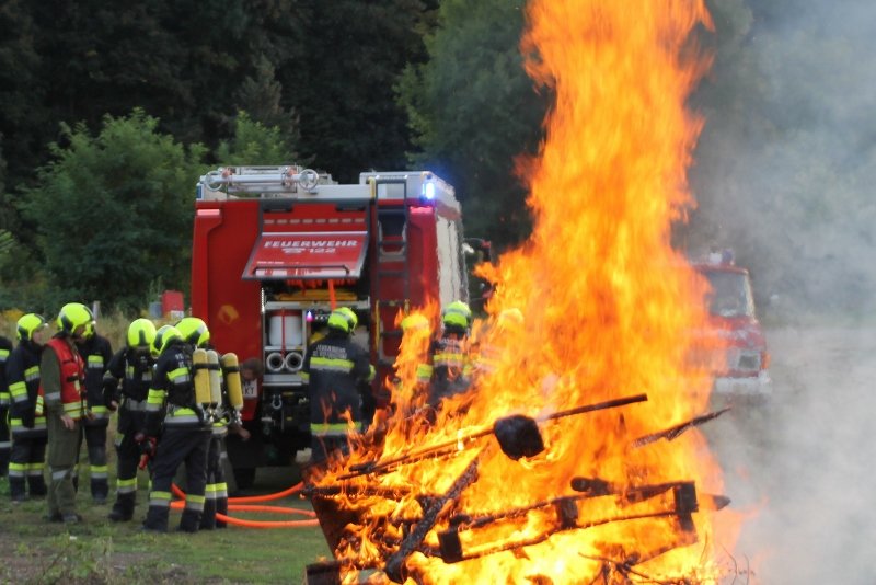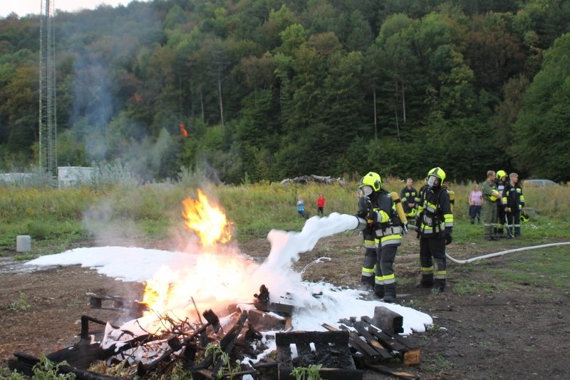 Die Kameraden der Freiwilligen Feuerwehr St. Veit an der Triesting sind am 31. August 2018 mit einer spannenden und sehr aufschlußreichen Übung, mit dem Thema „Schaum und Bioversal als Löschmittel“ in das zweite Übungs- und Ausbildungs-Halbjahr 2018 gestartet! Im Mittelpunkt dieser „Schaum-Übung“ stand vorranging unser neues Einsatzfahrzeug, das mit seinen 800 Litern „Erstschlag-Wasser“ einen entsprechend sparsamen Umgang mit dem Löschmittel erfordert. Um beispielgebend die Löschwirkung des reinen Wassers zu demonstrieren wurde einsatzmäßig ein Angriff auf einen Festbrennstoff-Brand mit einem C-Hohlstrahlrohr möglichst mit kurzen Stößen und Sprühstrahl vorgetragen.