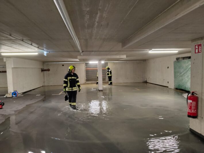 Mittels Unterwasserpumpen konnte der betroffene Garagenteil vom Wasser befreit werden. Rund 2 Stunden waren die Kameradinnen und Kameraden der FF St.Veit damit beschäftigt.