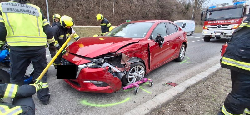 Am Montag, den 02.03.2026, wurde die Freiwillige Feuerwehr St. Veit an der Triesting um 08:17 Uhr zu einem Verkehrsunfall auf die Bundesstraße 18 alarmiert.