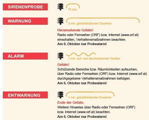 In ganz Österreich Sa., 6. Oktober 2018 zwischen 12:00 und 12:45 der alljährliche ZIVILSCHUTZ-PROBEALARM durchgeführt!