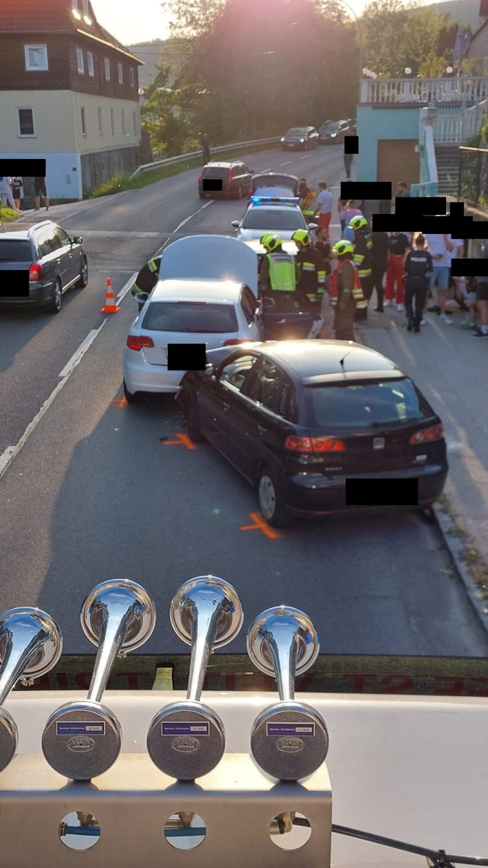 Kurze Zeit später, wurden wir zu einem Verkehrsunfall auf der B18 alarmiert. Gegen 19:00 Uhr fuhren, aus bisher unbekannter Ursache, 3 Fahrzeuge hintereinander auf und sorgten somit für eine Karambolage. Eine der insgesamt 4 beteiligten Personen wurde aufgrund Verletzungen unbestimmten Grades in das nächstgelegene Krankenhaus gebracht. Die übrigen Beteiligten blieben zum Glück unverletzt. Nach der Absicherung der Einsatzstelle und Freigabe durch die Polizei, wurden die fahruntüchtigen Fahrzeuge auf einem nahegelegenen Parkplatz abgestellt. Im Anschluss wurde die Fahrbahn von groben Verunreinigungen gesäubert und dem Straßenerhalter zur weiteren Reinigung übergeben. Nach Freigabe durch die Straßenmeisterei wurde die Absicherung abgebaut und eingerückt.